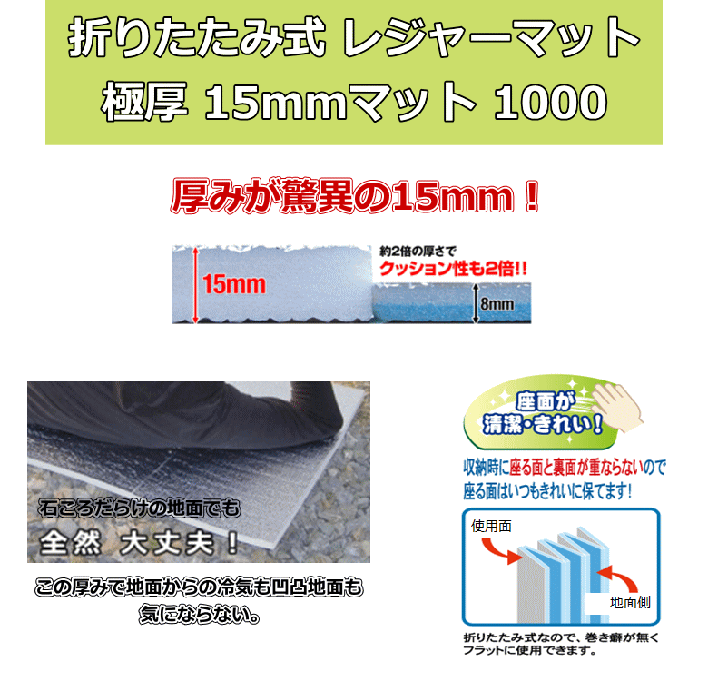 ユーザー レジャーマット 折りたたみ式 極厚 15mmマット 1000 (U-P930) (1000×1800×15mm) 両面アルミタイプ ~R~
