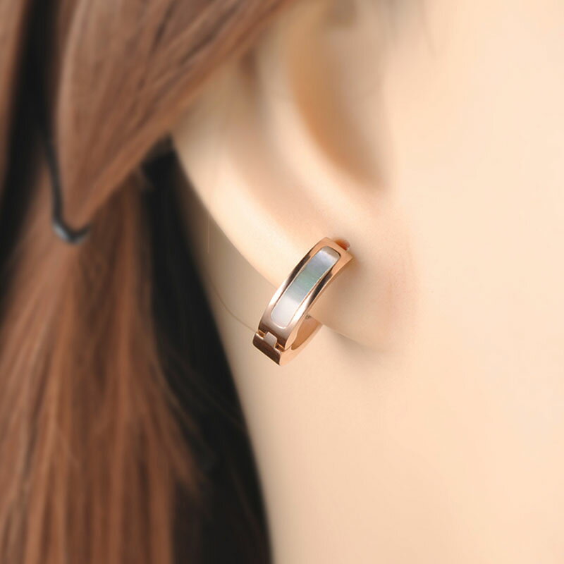 お洒落な貝のリングピアスは、普段着に合わせても綺麗だし、結婚式や入学式、パーティーなどのフォーマルなスタイルにも似合うフープピアス。