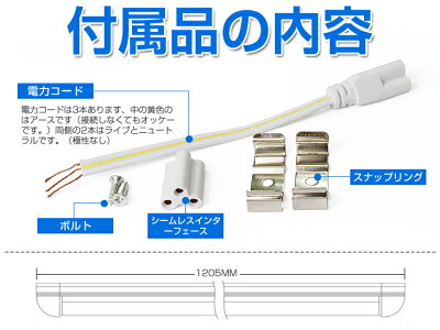 製品仕様 商品名 T8 一体型直管LED蛍光灯40W形 消費電力 18W(40W相当) LED搭載数 120個素子 色温度 3000K ルーメン 2500LM 定格電圧 AC 100-240V 照射角 180° サイズ(約) 1205X37X30mm 寿命 50000時間 商品内容 T8 一体型直管LED蛍光灯40W形(取り付け道具付き)15本 商品詳細 T8 一体型直管形蛍光灯40W形対応、2500ルーメンLED蛍光灯です。